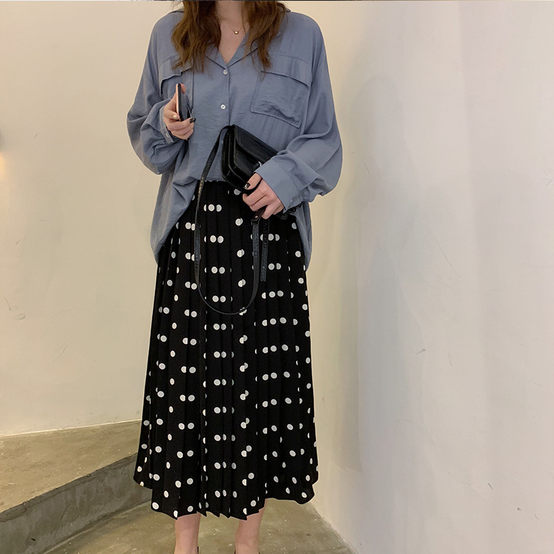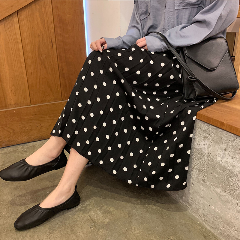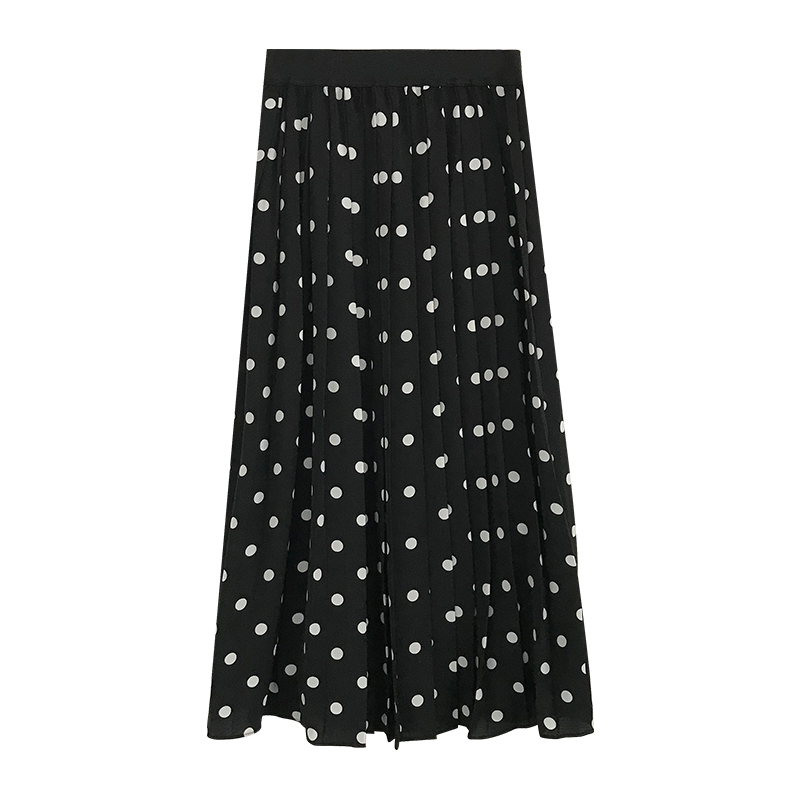 A7seven半身裙女2019春夏裝新款白色波點百褶裙韓版中長款a字裙子