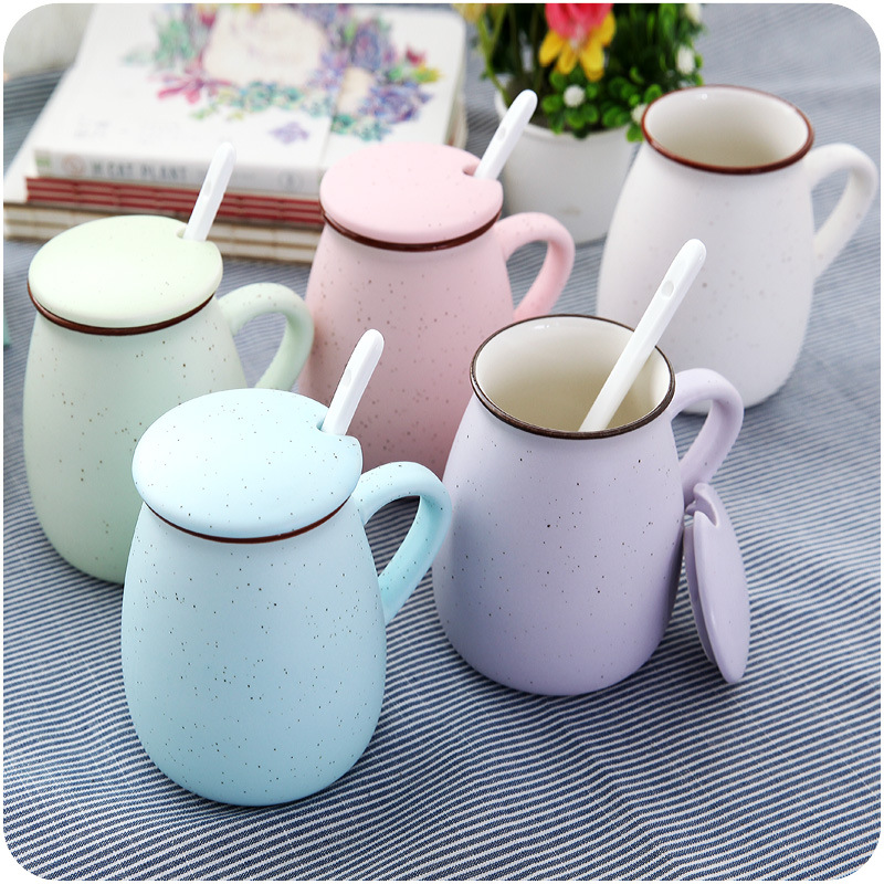 / 牛奶陶瓷杯子帶蓋勺馬克杯創意復古滿天星情侶茶水杯咖啡杯禮品杯