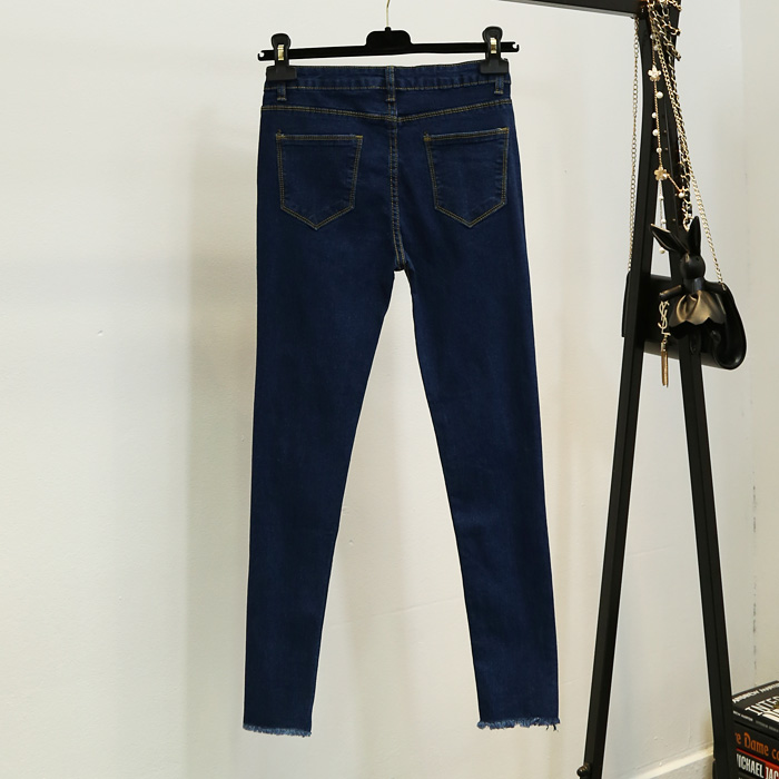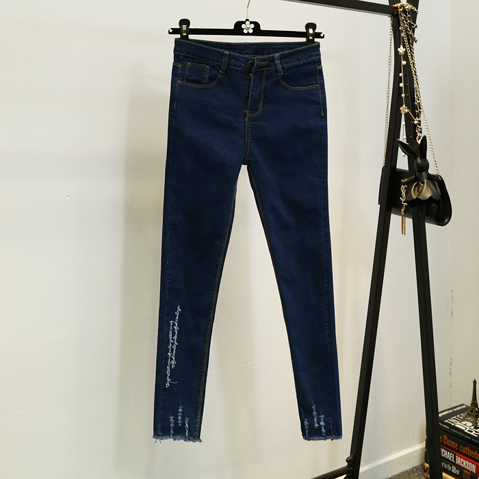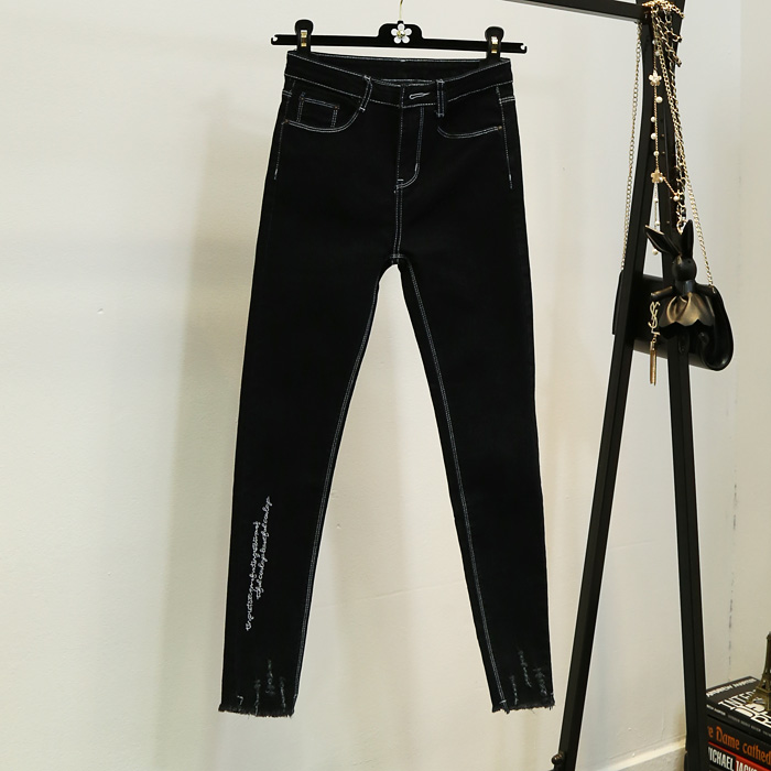 春季新款韓版緊身小腳褲彈力顯瘦刺繡字母鉛筆高腰牛仔長褲女