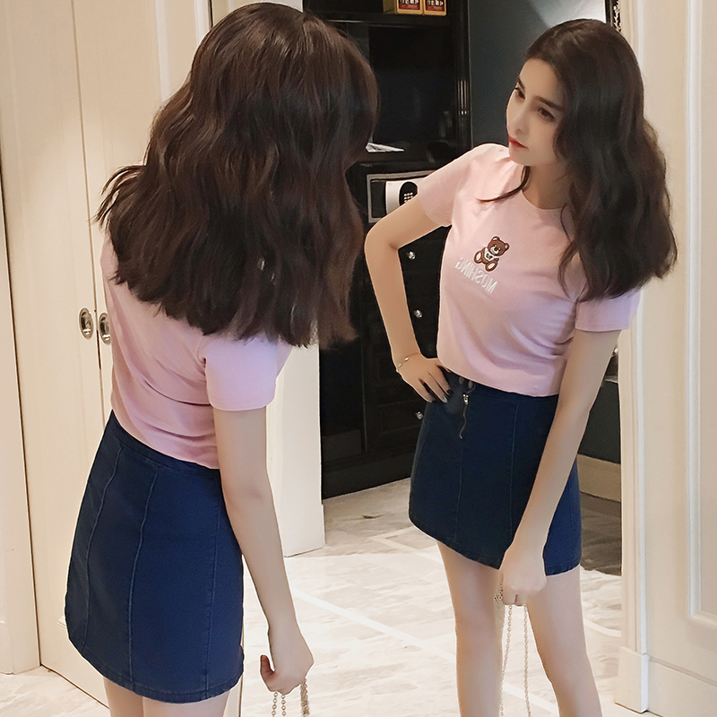/ 夏季新款純棉短袖T恤女圓領修身半袖上衣百搭打底衫純色小衫
