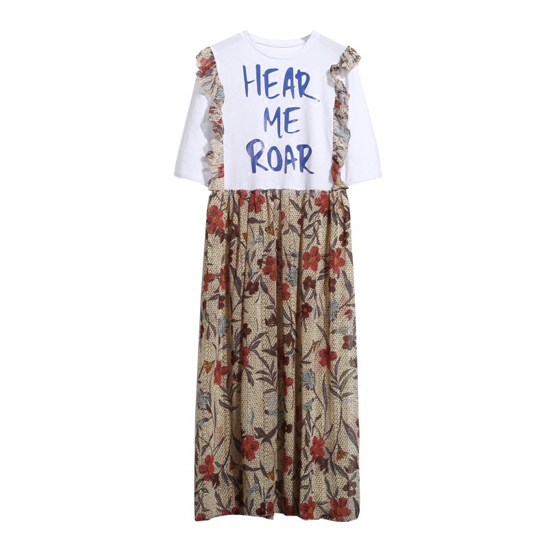 / 夏季韓版寬松碎花裙荷葉邊長裙T恤假兩件套雪紡吊帶連衣裙女