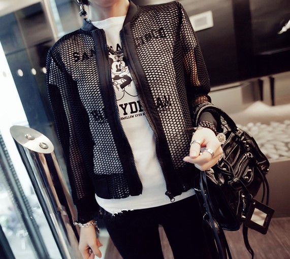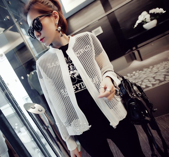2017夏季新款韓版時尚女裝鏤空網格開衫短款小外套簡約網狀防曬衣