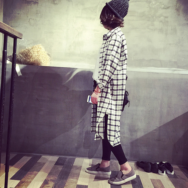 軟妹黑白過膝格子襯衫女長款ulzzang襯衣外套韓版學生bf百搭寬松