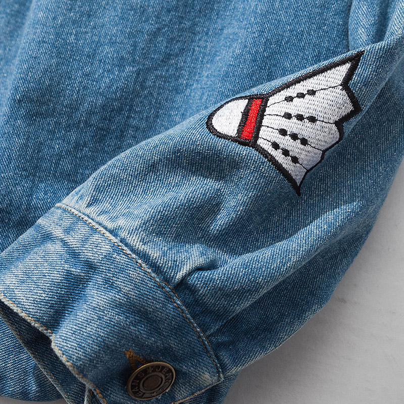 / 秋季新款韓版水洗繡花水洗短褲男士牛仔夾克外套