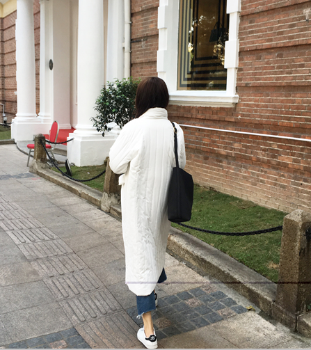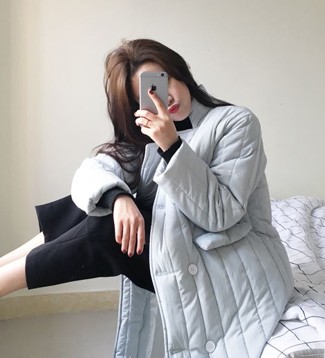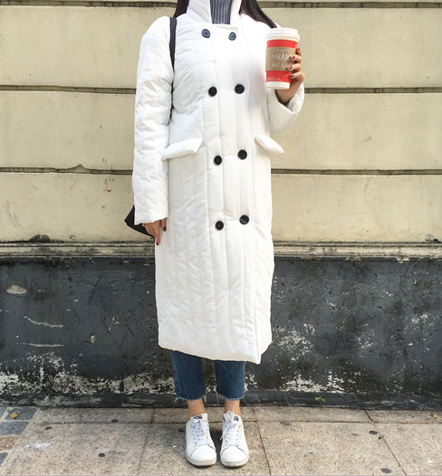 冬款韓版女裝外套立領長款面包服加厚雙排扣長袖純色棉衣棉服