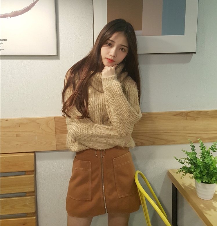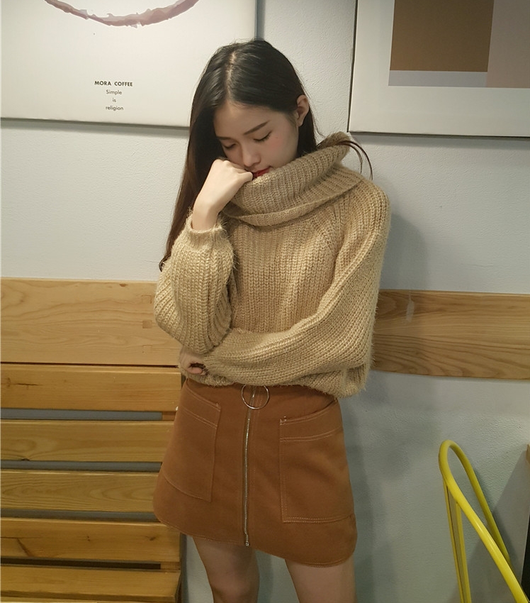 韓國學院風秋冬純色高領兩穿寬松百搭套頭長袖針織毛線毛衣女