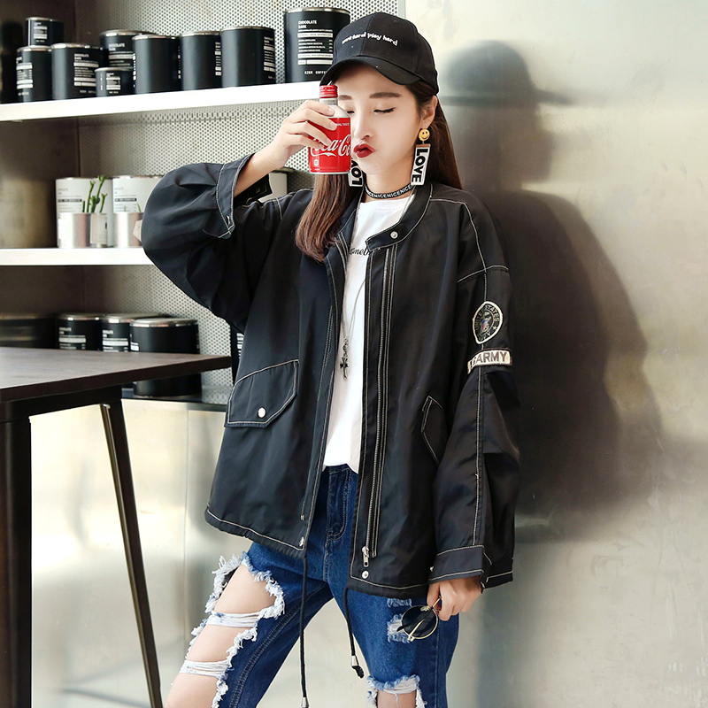 新款外套女原宿風韓版bf寬松學生棒球服春秋個性刺繡微章夾克情侶