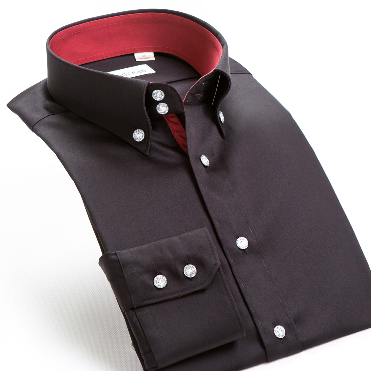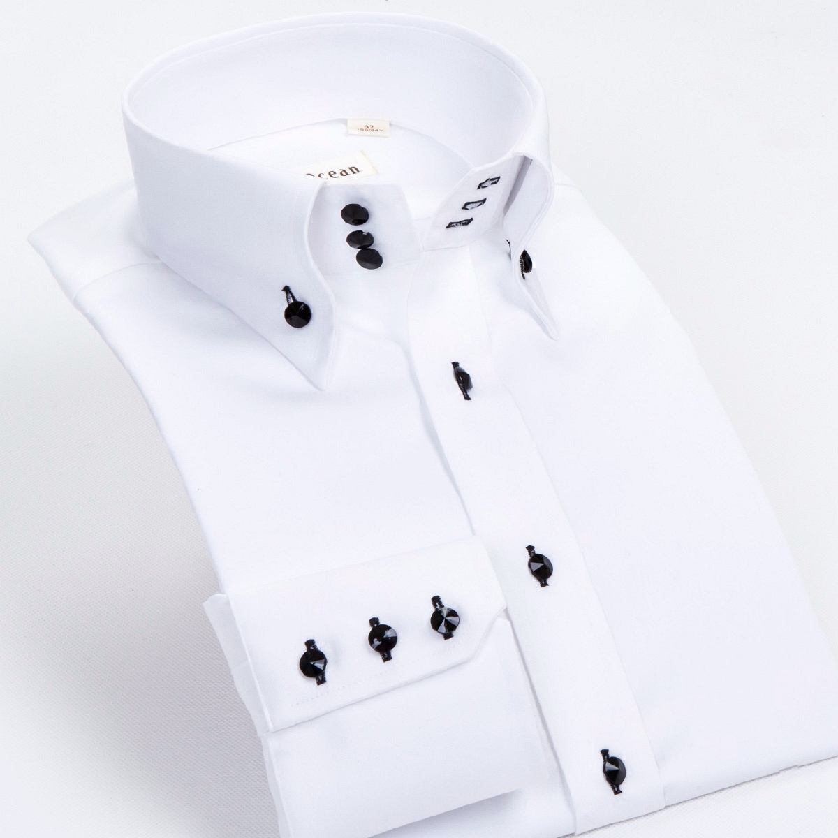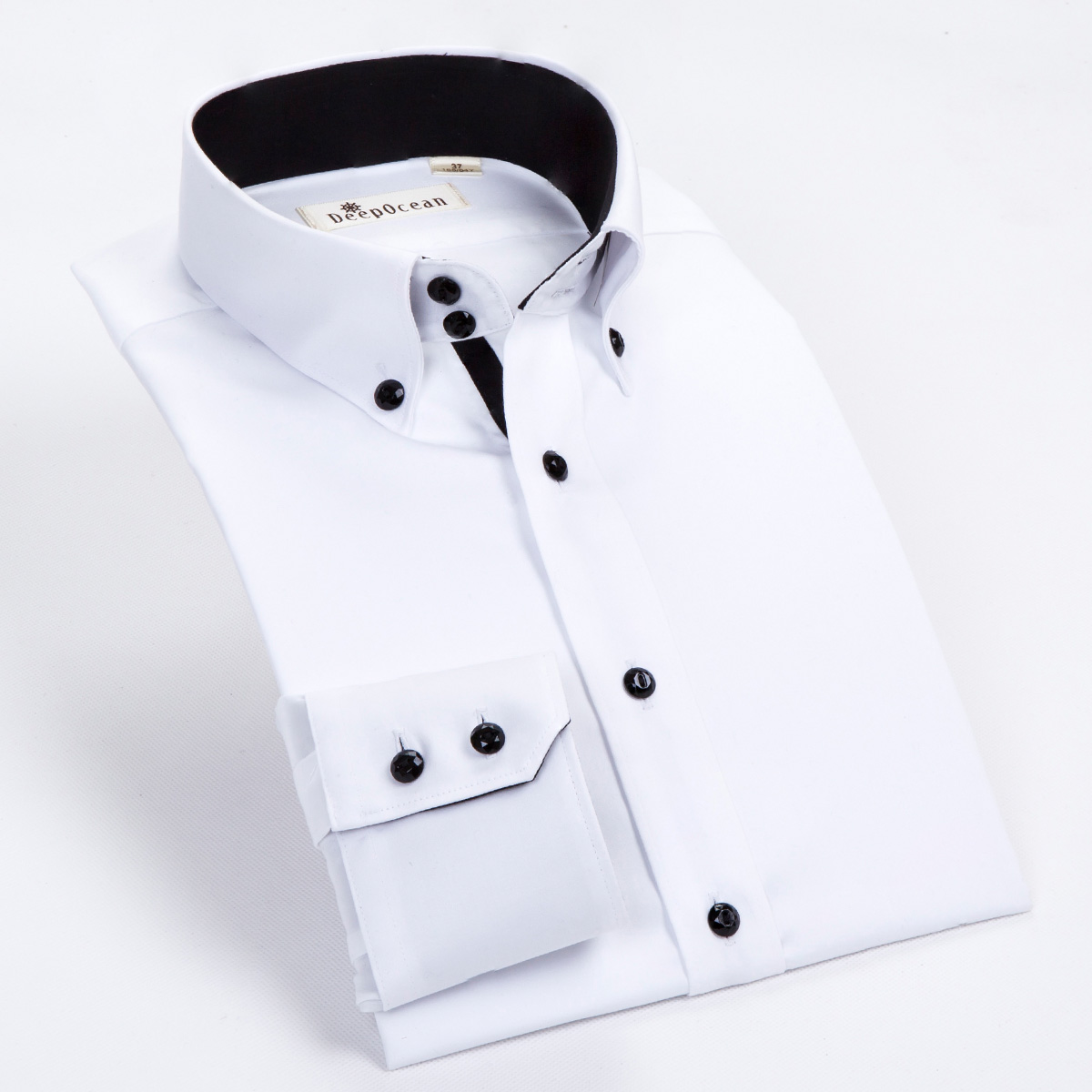 白色襯衫男長袖男士高領絲光棉韓版修身免燙襯衣深海休閑商務秋裝