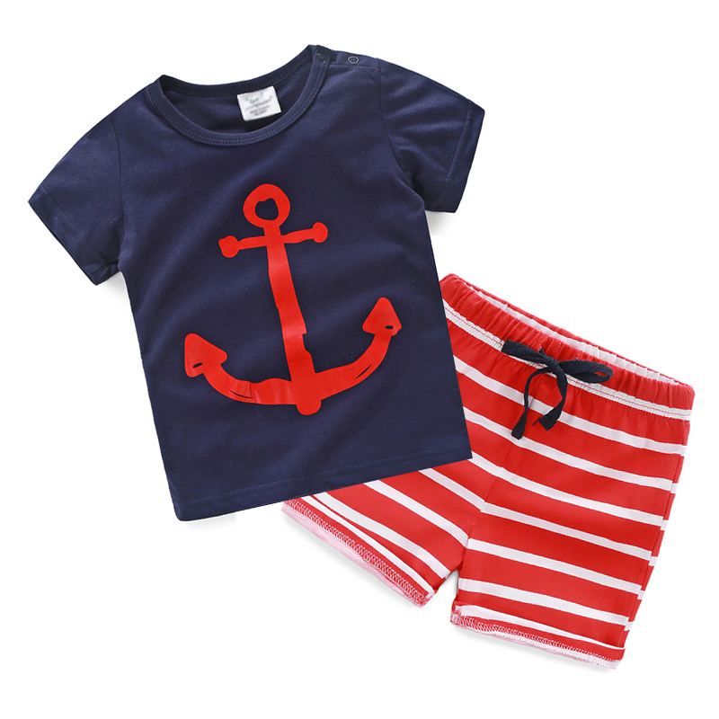 / 兒童條紋套裝 夏裝新款男童童裝短袖T恤短褲兩件套tz-2978