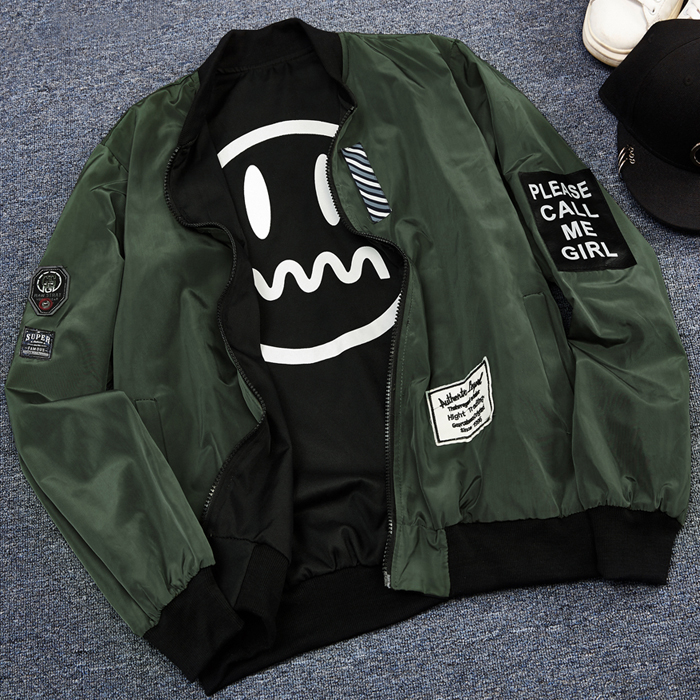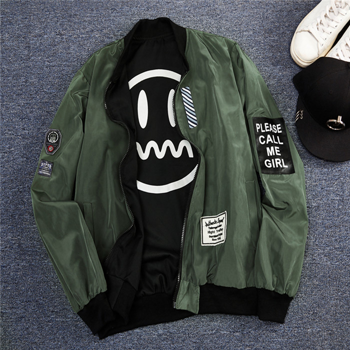 2017秋季新款青少年夾克寬松棒球服笑臉雙面穿薄款外套韓版潮學生