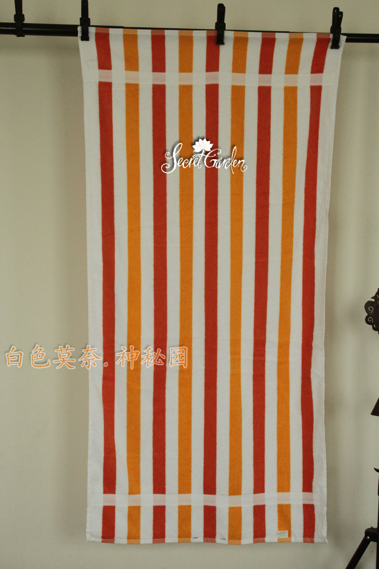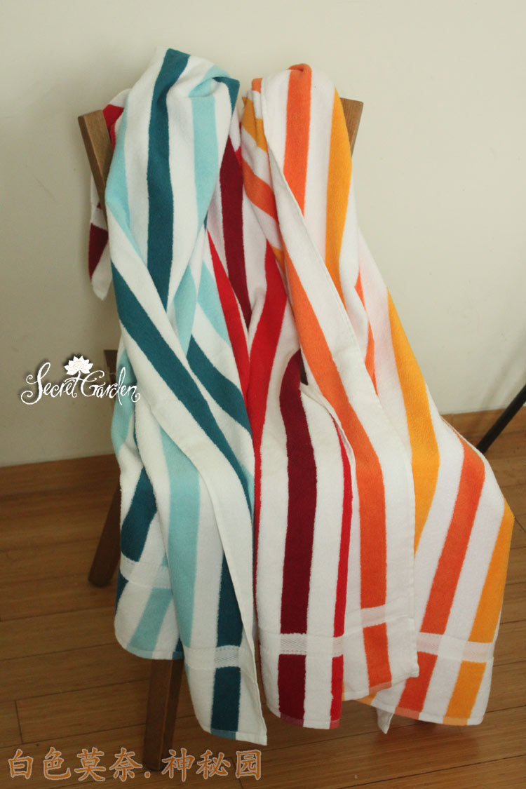 【包含】一件浴巾【質地】純棉色織而非印花【色調】彩色條紋飾【尺寸】中號:70*140cm;(請允許些微測量誤差)【工藝】毛圈