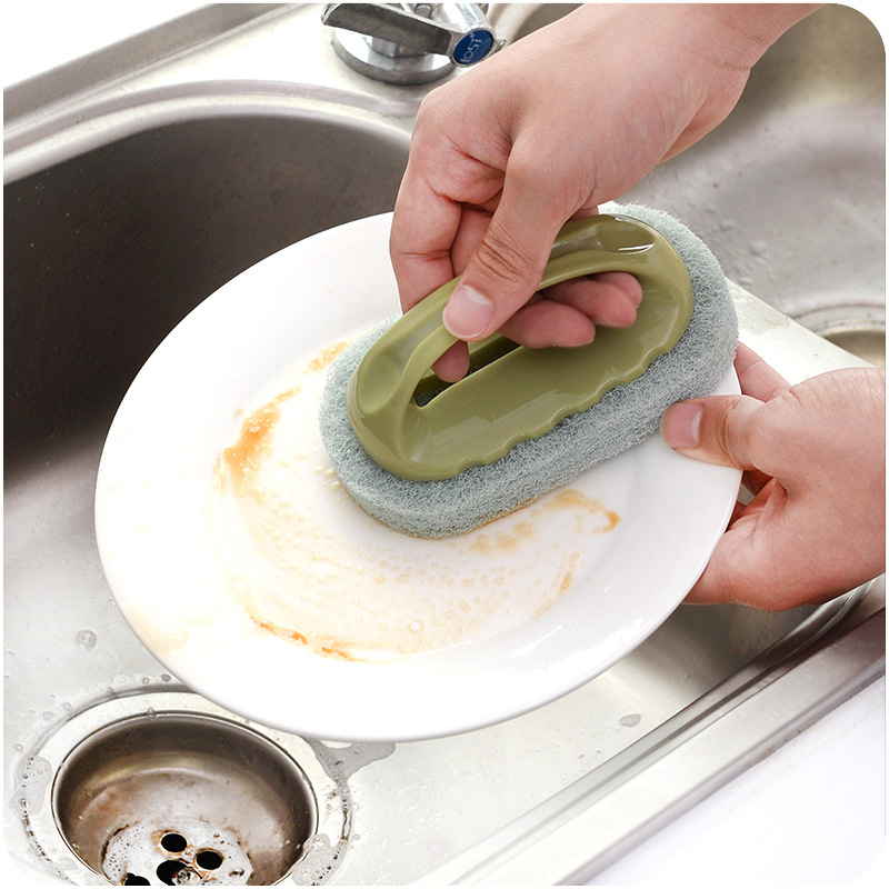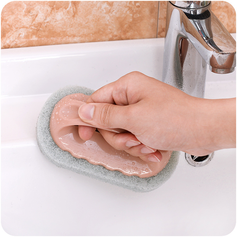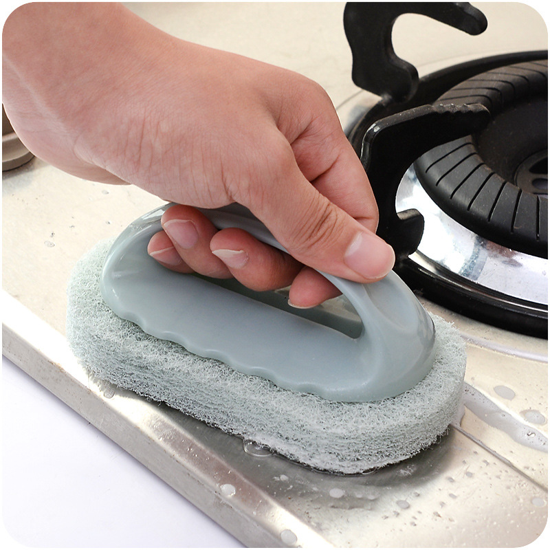 / 海綿擦帶手柄去油污無死角去污漬擦浴室浴缸刷地板瓷磚除垢清潔擦