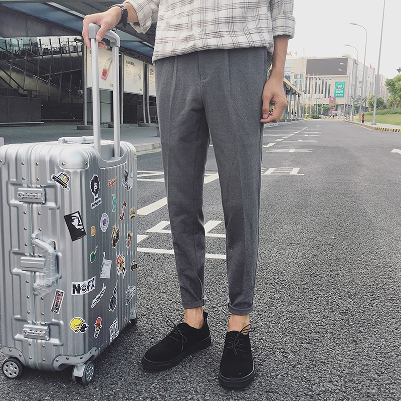 秋季新款韓版青年男純色舒適垂感修身小腳休閑西褲
