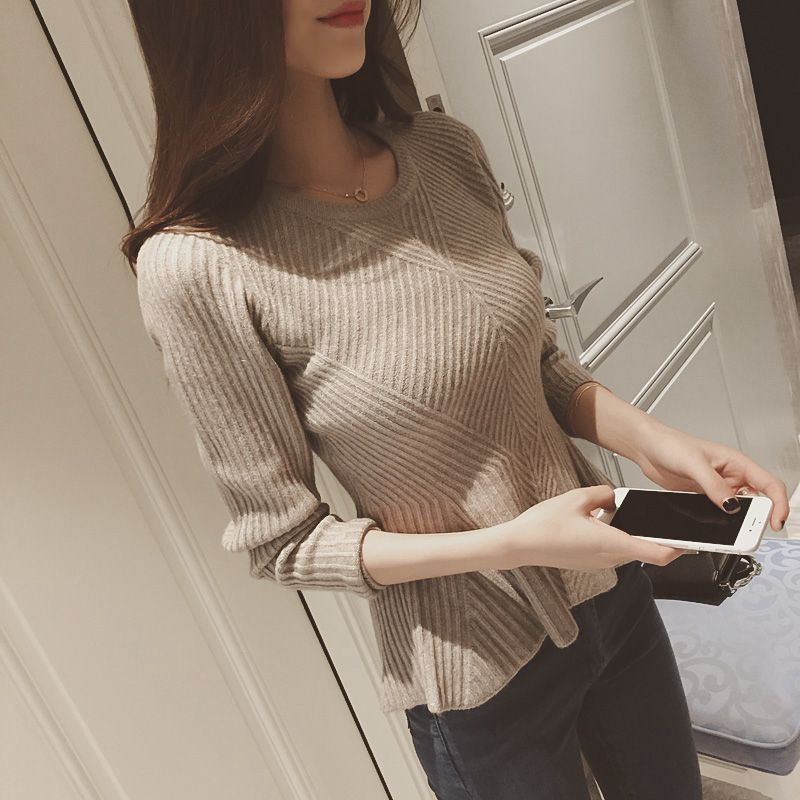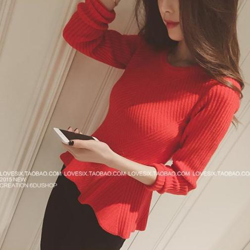 女裝秋裝2016新款潮顯瘦收腰套頭修身長袖打底針織衫秋冬緊身毛衣