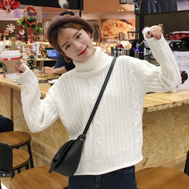 / 冬款韓國甜美高領套頭長袖卷邊加厚麻花寬松學生毛線毛衣女