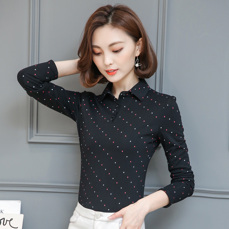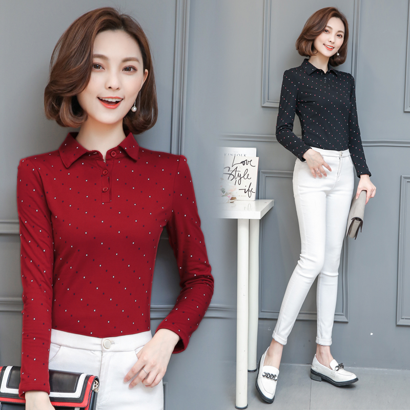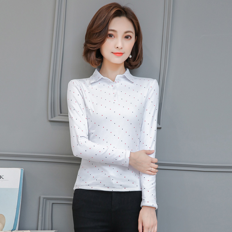 大碼翻領有領秋冬打底衫女加絨帶領修身顯瘦長袖t恤保暖上衣外穿