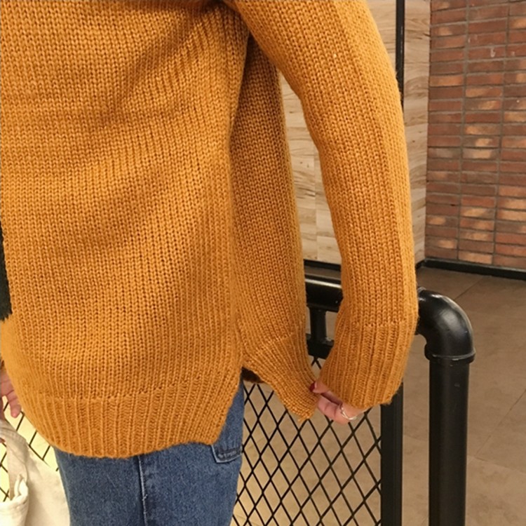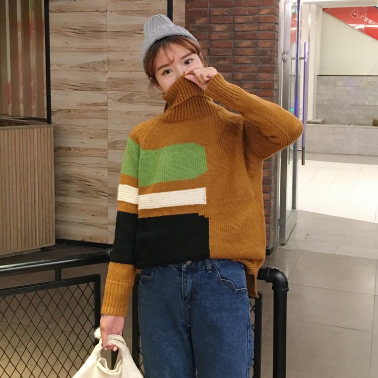 / 冬款韓國復古風撞色條紋套頭高領長袖寬松百搭學生毛線毛衣女