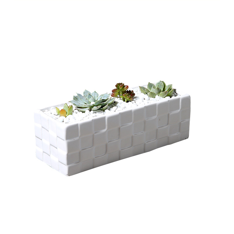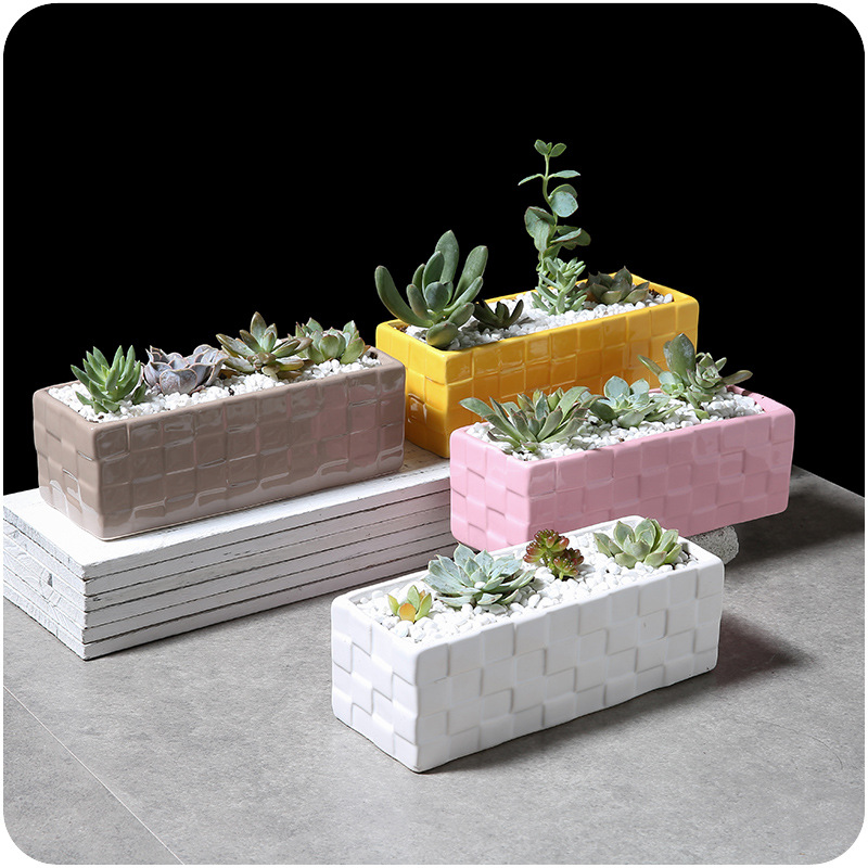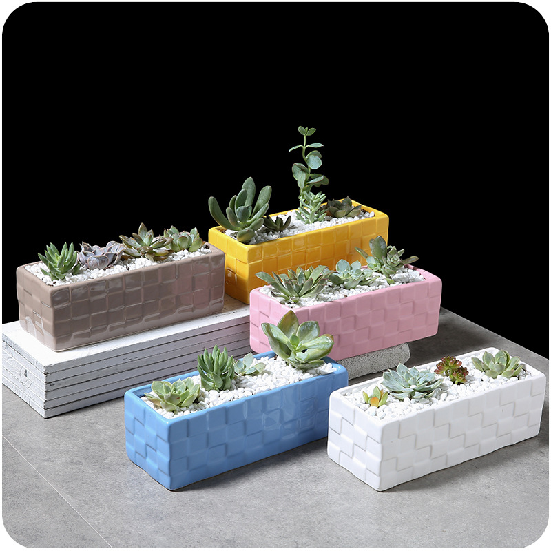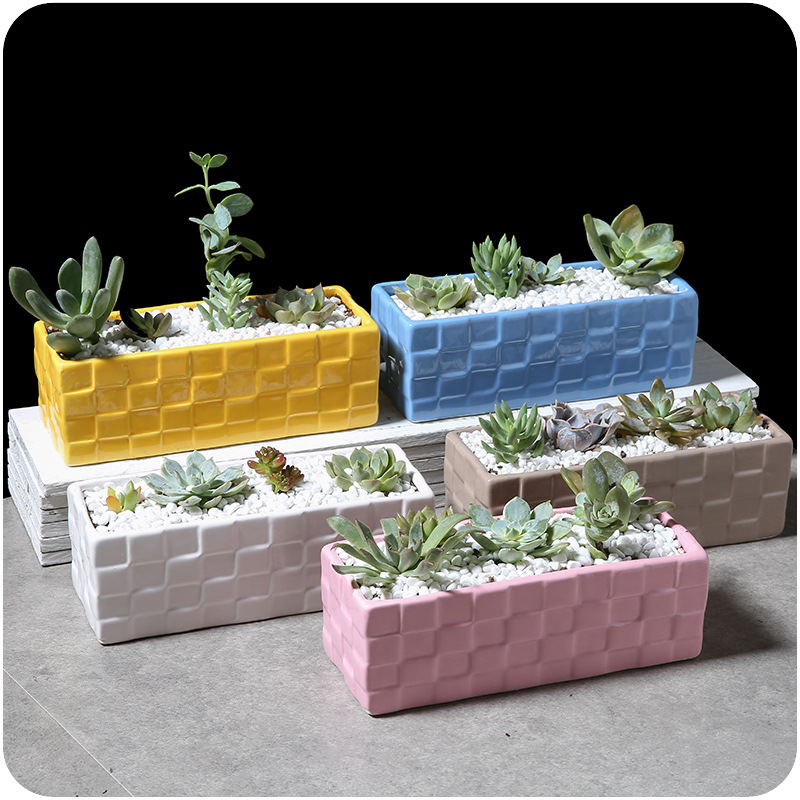 / 長方形多肉植物大花盆彩色陶瓷桌面創意磚格拼盤組合花卉種植花器