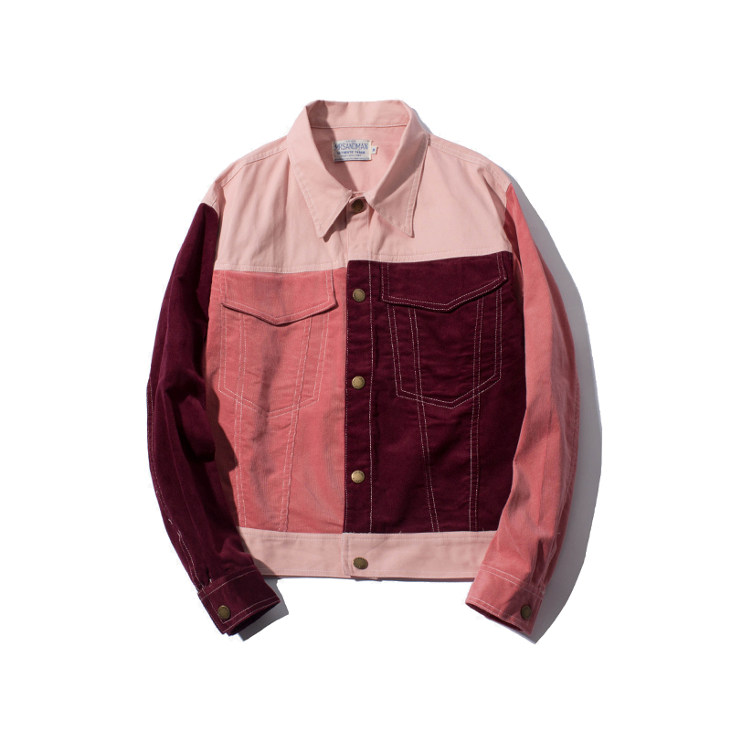 / 男裝新款韓版秋裝燈芯絨拼接撞色男士夾克外套
