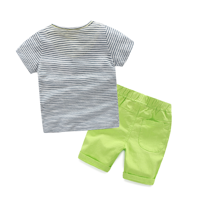 寶寶條紋短袖套裝男 夏裝新款男童童裝 兒童T恤短褲子tz-2852