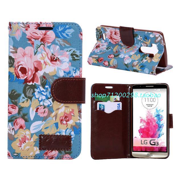 LG G3花布手機套D855左右開翻牛仔布皮套支架插卡保護套外殼批發