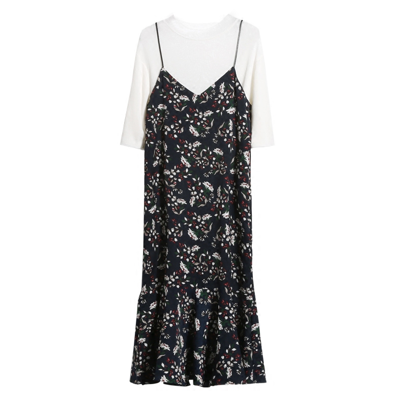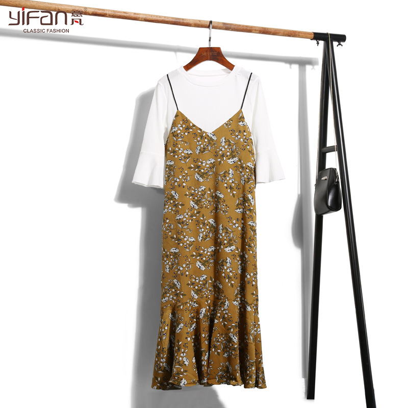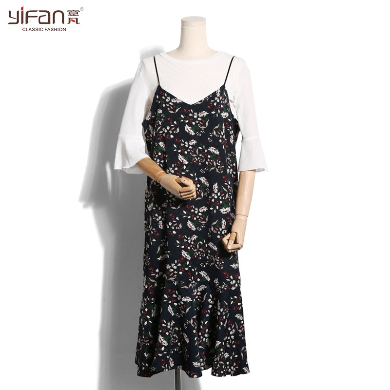 / 夏季新款韓版中長款碎花吊帶裙雪紡連衣裙女V領印花打底吊帶