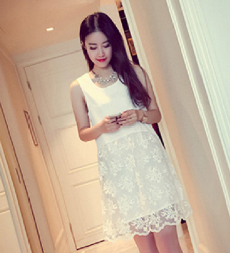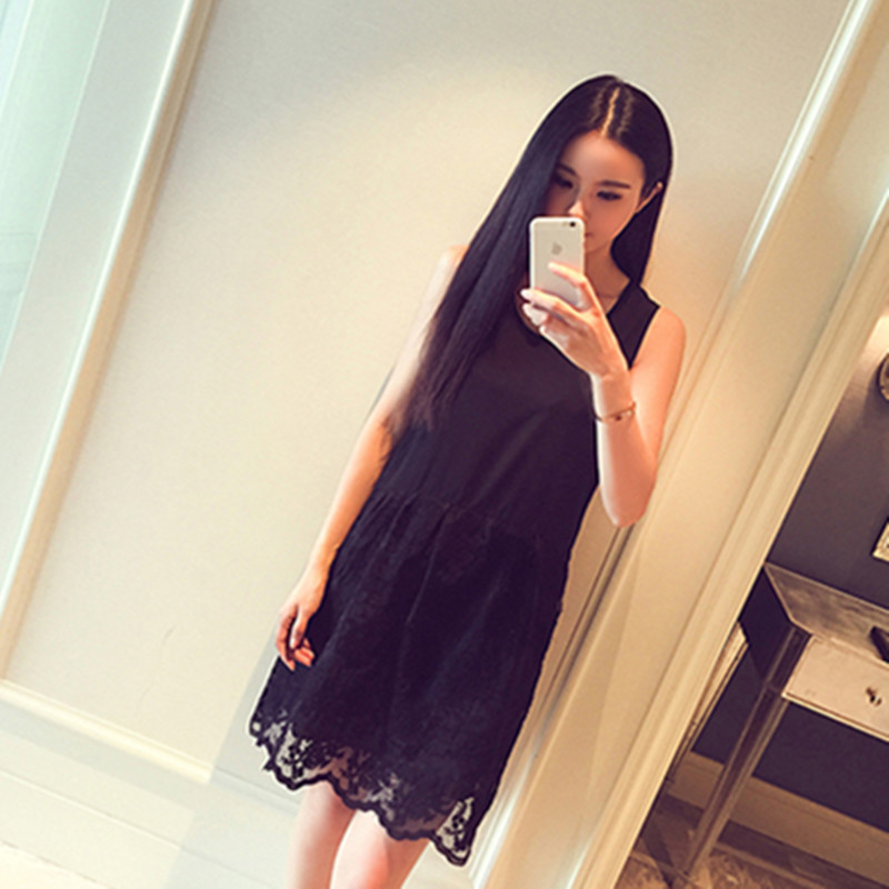 韓版春裝內搭中長款蕾絲刺繡吊帶背心裙女裝打底裙寬松大碼連衣裙