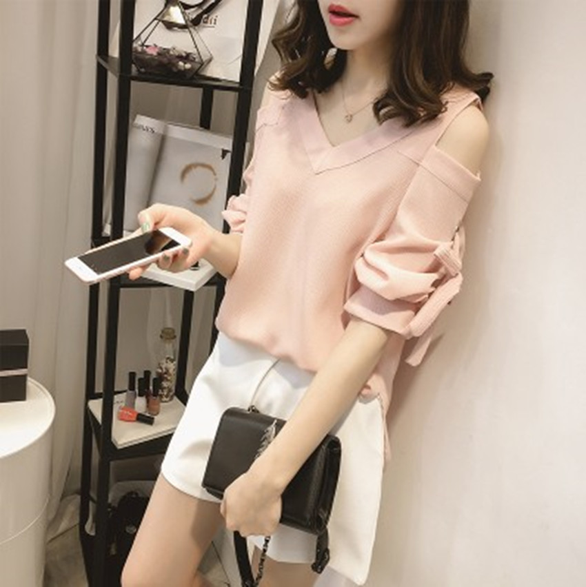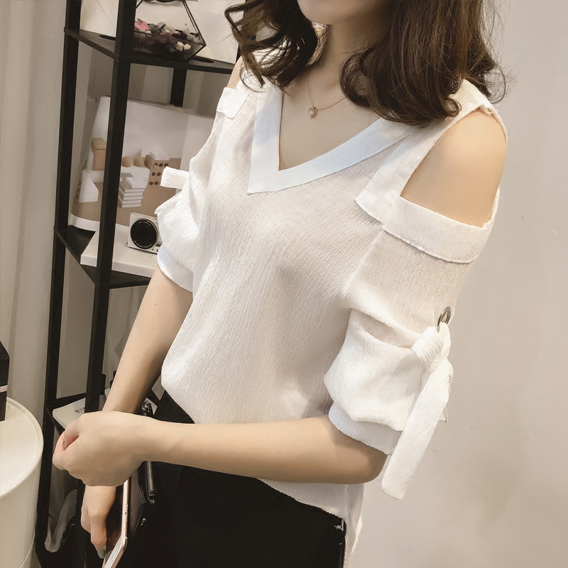 夏天衣服性感露肩t恤女短袖韓版大碼寬松打底衫上衣女時尚雪紡衫