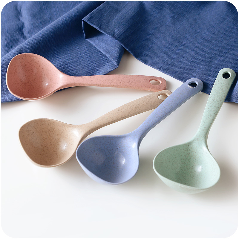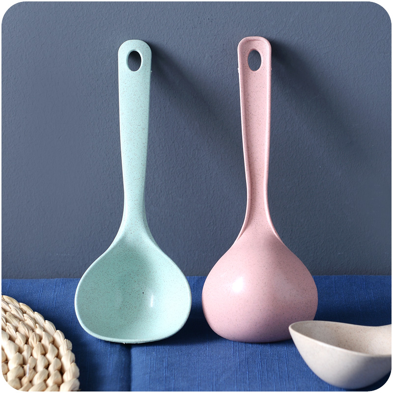 環保稈色湯勺家用長柄盛粥勺廚房廚具塑料加厚大號稀飯圓勺子可掛