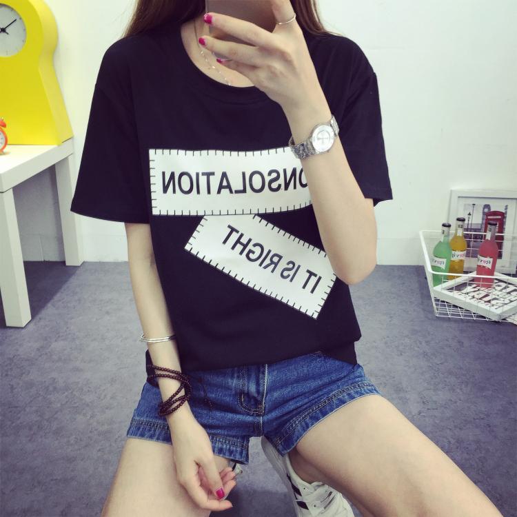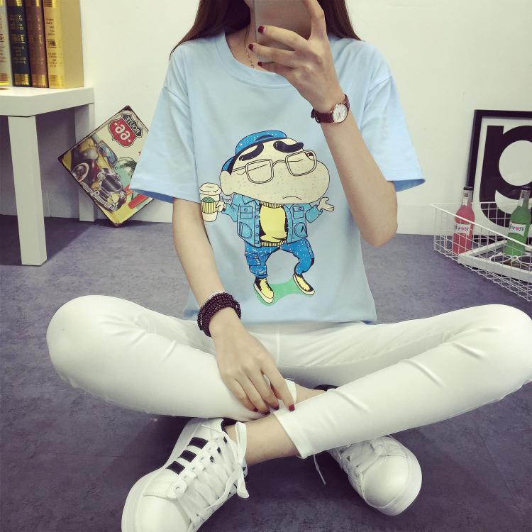 / 韓版學生半袖大碼女裝t恤衫短袖寬松圓領卡通上衣休閑打底衫夏裝