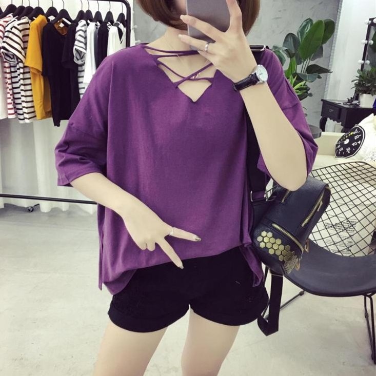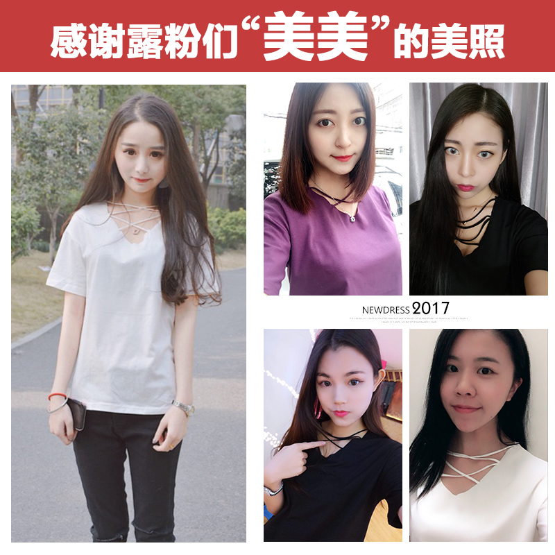 / 韓版春夏裝白色t恤女鏤空交叉短袖上衣服寬松夏季百搭體恤潮純色