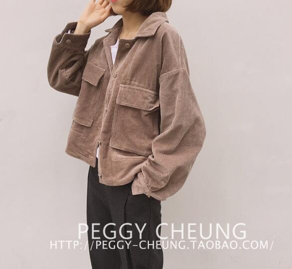 / 2017春裝新款女裝韓版學院風燈芯絨棒球服夾克寬松長袖短外套女春