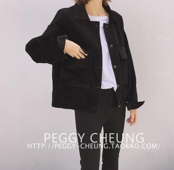 2017春裝新款女裝韓版學院風燈芯絨棒球服夾克寬松長袖短外套女春