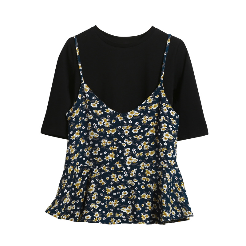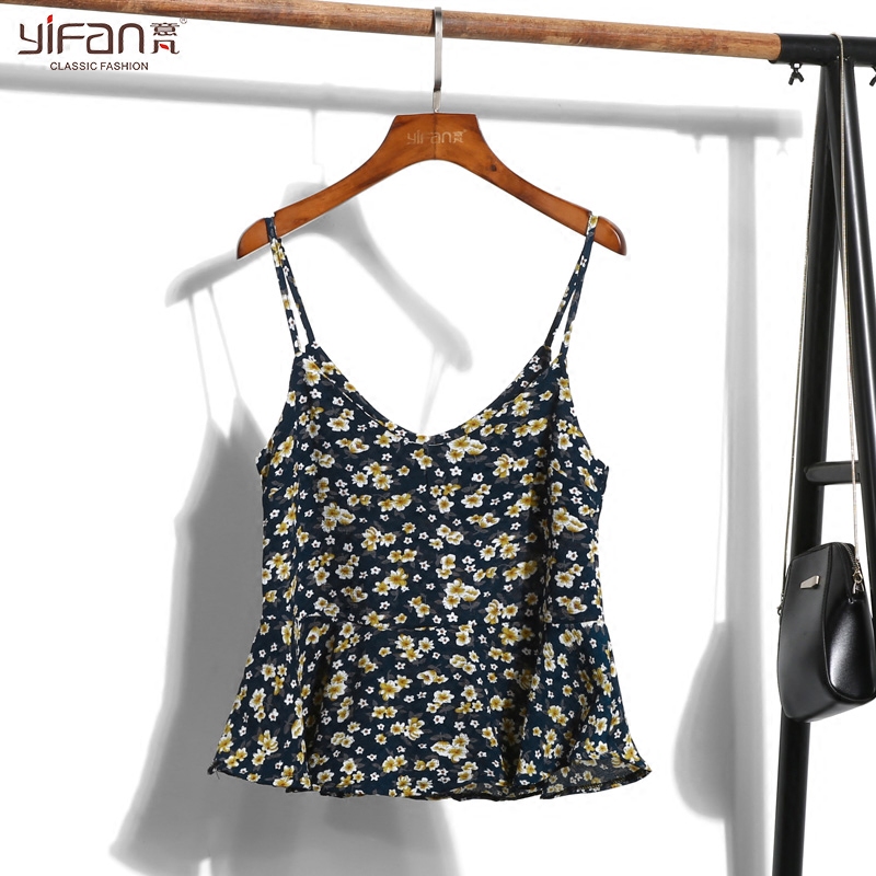 / 春夏韓版新款復古風雪紡碎花短款V領打底寬松百搭吊帶背心上衣女