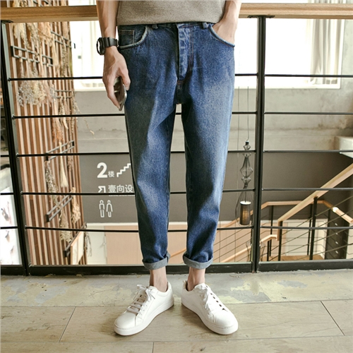 / 秋季新款淺色水洗韓版錐形修身小腳哈倫褲牛仔褲男