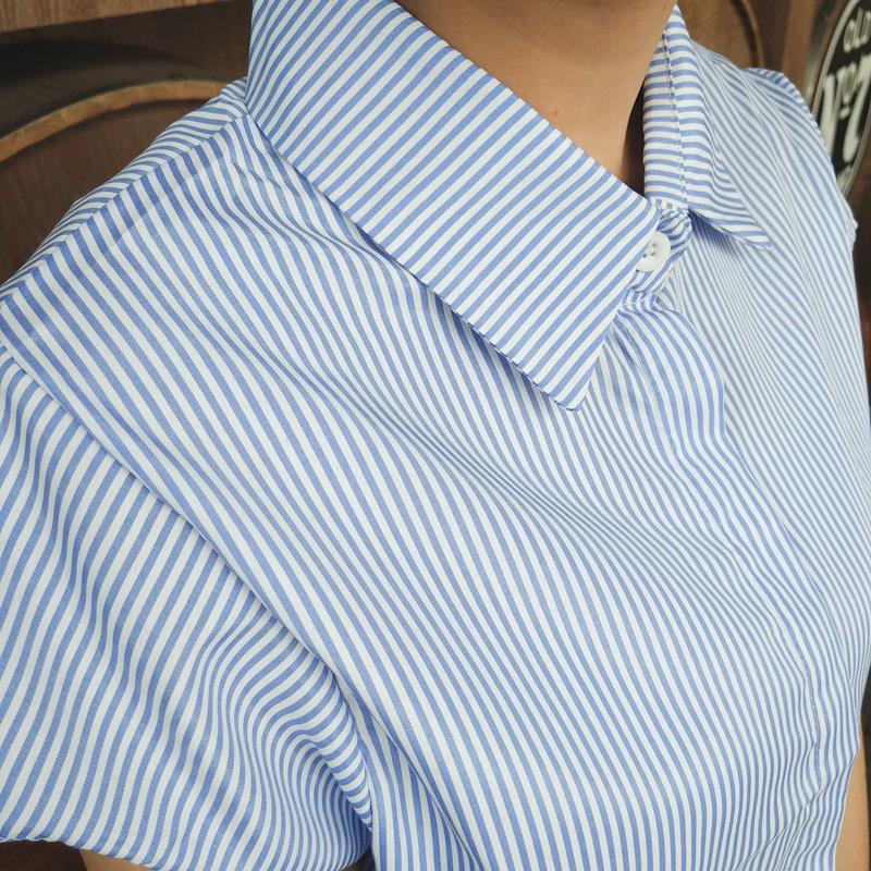 2017夏季新款條紋襯衣立領短袖中長款寬松大碼女裝百搭襯衫女韓范