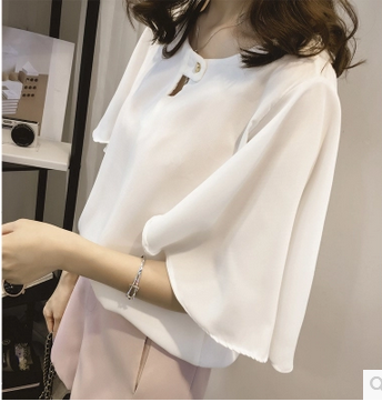 / 胖mm200斤雪紡衫短袖遮肚子2017夏季大碼女裝寬松喇叭袖顯瘦上衣
