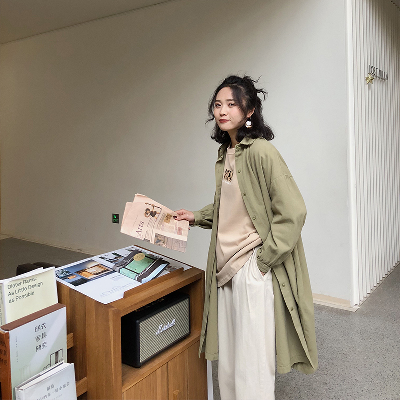 A7seven襯衫連衣裙女2019春裝新款純色韓版長袖寬松顯瘦中裙外套