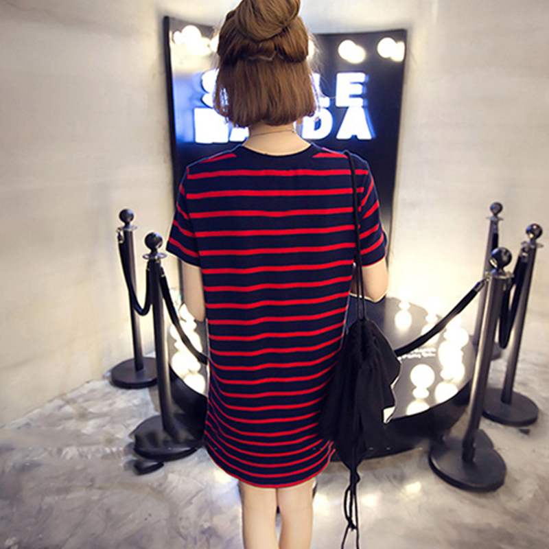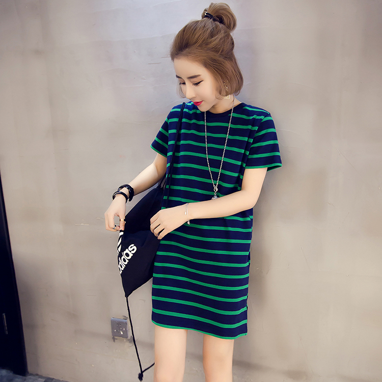/ 休閑寬松T恤女學生寬松2017夏裝新款韓版中長款條紋百搭打底衫潮