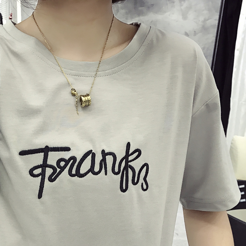 女裝寬松夏裝刺繡字母T恤女顯瘦打底上衣服簡約短袖t恤潮大碼