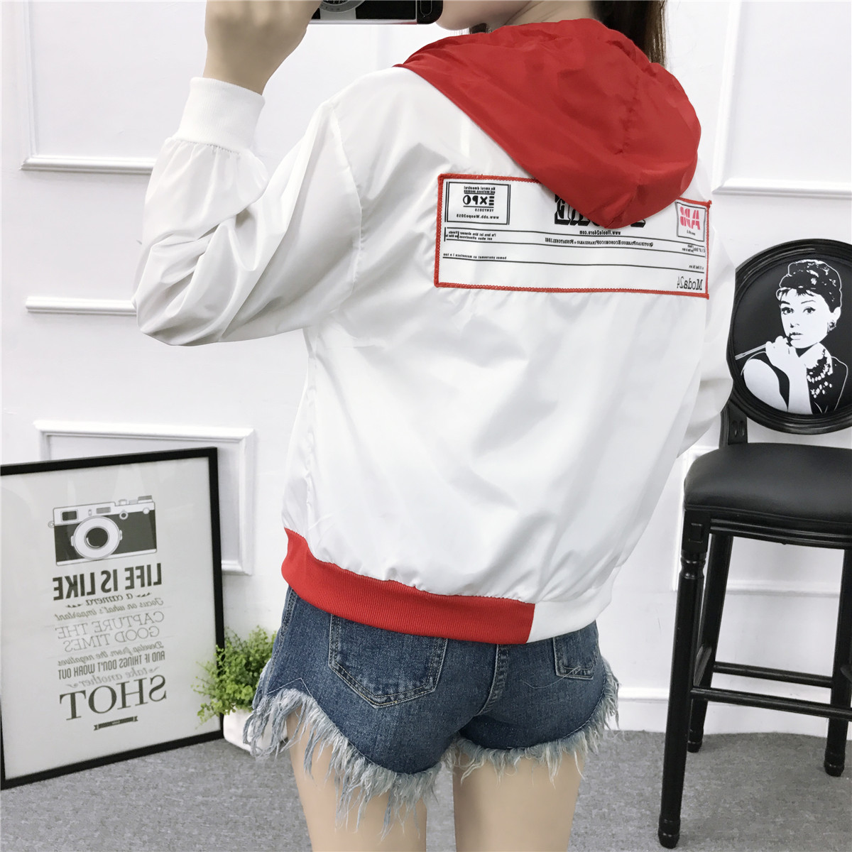 2017春秋薄款少女拉鏈開衫夏天連帽防曬衣初中高中學生短款外套女