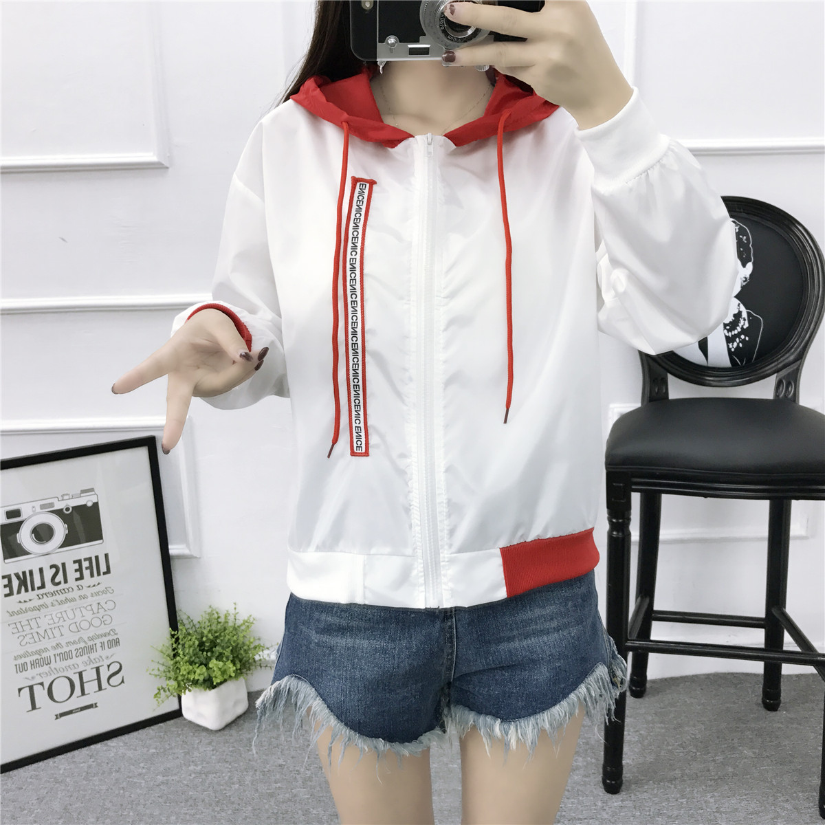 / 2017春秋薄款少女拉鏈開衫夏天連帽防曬衣初中高中學生短款外套女