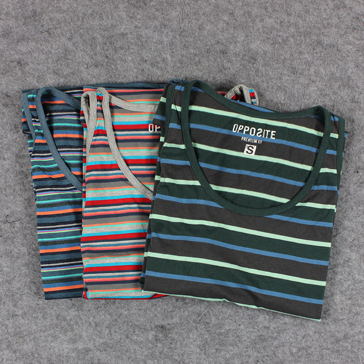 / 夏季時尚多色條紋男士背心 柔軟80%棉 百搭圓領運動休閑跑步背心