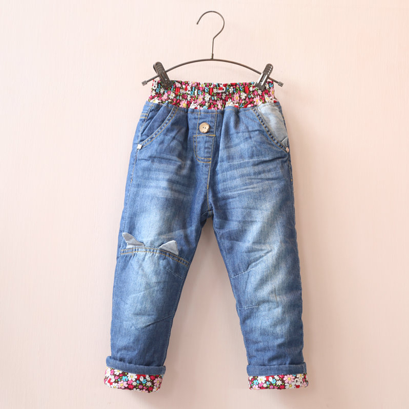 / 兒童加厚牛仔褲 冬裝韓新款女童童裝碎花長褲子kz-7639