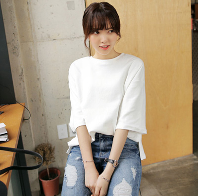 / 夏裝純白色韓版百搭圓領T恤女短袖寬松體恤學生bf半中袖純棉上衣