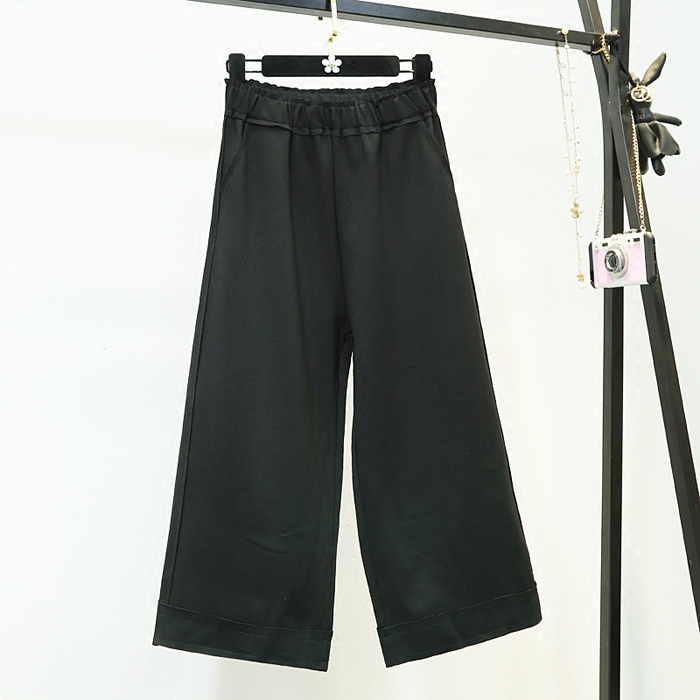 闊腿褲女春夏九分褲顯瘦休閑褲松緊腰褲子高腰七分褲子直筒褲