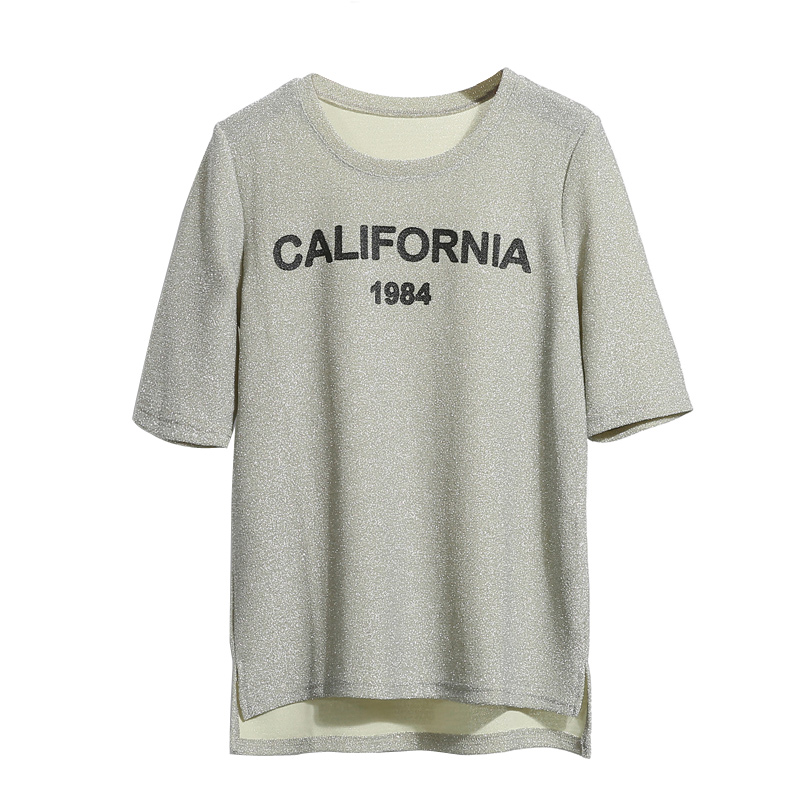 初夏寬松短袖T恤韓版百搭亮絲字母印花百搭女裝體恤上衣新款