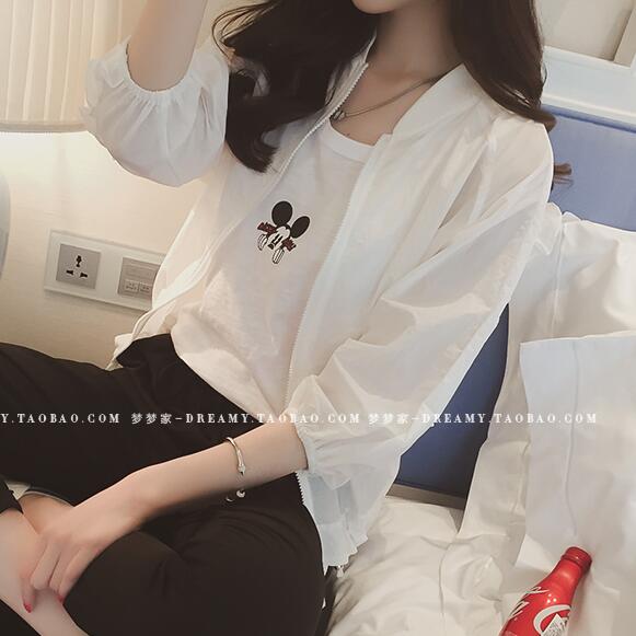 2017夏季新款木耳邊寬松棒球防曬服女白色bf風薄外套短款防曬衣女