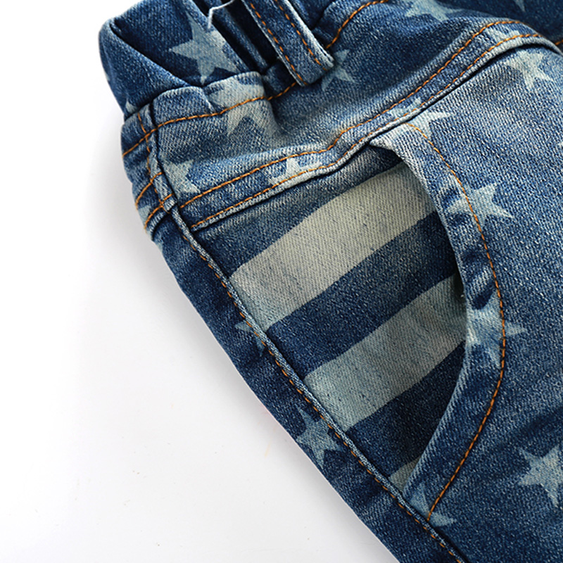/ 寶寶條紋拼接牛仔褲 春裝新款童裝男童裝兒童滿印褲子kz-7080