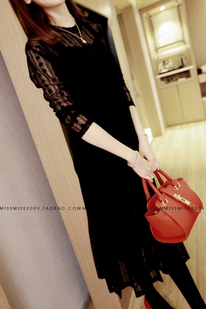 2016春裝新韓版蕾絲半透中長百搭吊帶背心打底兩件套連衣裙女Q113